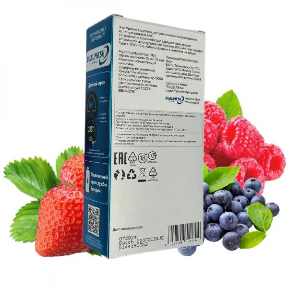 Технические характеристики WAKA XLAND 15000 - Тройная Ягода